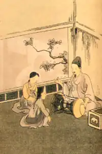 In addition, most kisaeng had a gibu, or "kisaeng husband", who provided protection and economic support, such as buying them valuable things or granting them social status in return for entertainment.[29] Most gibu were former soldiers, government enforcers, or servants of the royal household.[30] At times, there was friction between would-be customers and possessive gibu, although the gibu was not the kisaeng's husband and had no legal claim to her.[20] The role of the gibu changed over time; at first, many kisaeng in government service had no such patron.[31] However, by the late Joseon dynasty, the gibu system was more or less universal.[32]
