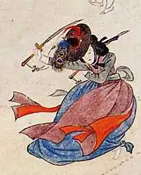 Kisaeng (Korean: 기생; Hanja: 妓生; RR: Gisaeng), also called ginyeo (기녀; 妓女), were enslaved women from outcast or enslaved families who were trained to be courtesans, providing artistic entertainment and conversation to men of upper class.[1][2][3] First emerging in the Goryeo dynasty, kisaeng were officially sanctioned by the state and employed in various public functions. While many worked in royal courts, others were stationed throughout the provinces.