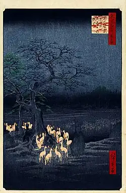 The kitsune were also said to employ their kitsunebi to lead travelers astray in the manner of a will-o'-the-wisp.[143]