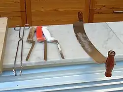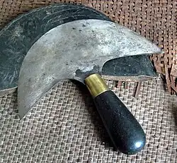 - Head knife or Round knife: A knife with a semicircular blade used since antiquity to cut leather.