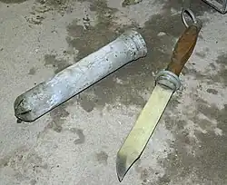 - Survival knife: A sturdy knife, sometimes with a hollow handle filled with survival equipment.