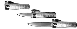 - Switchblade: A knife with a folding blade that springs out of the grip when a button or lever on the grip is pressed.