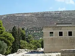 Though it was surrounded by the town of Knossos, this hill was never an acropolis in the Greek sense. It had no steep heights, remained unfortified, and was not very high off the surrounding ground.[36]