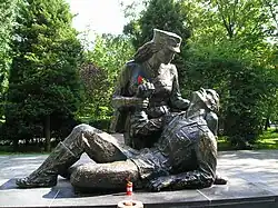 In 2000 the city business council of Kołobrzeg commissioned a monument called the Millennium Memorial as a commemoration of "1000 years of Christianity in Pomerania", and as a tribute to Polish-German Reconciliation, celebrating the meeting of King Bolesław I of Poland and King Otto III of Germany, at the Congress of Gniezno, in the year 1000. It was designed and built by the artist Wiktor Szostalo in welded stainless steel. The two figures sit at the base of a 5-meter cross, cleft in two and being held together by a dove holding an olive branch. It is installed outside the Basilica Cathedral in the city center.