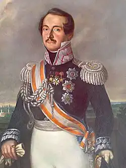 Kolberg, with most of Farther Pomerania, was granted to Brandenburg-Prussia in 1648 by the Treaty of Westphalia and, after the signing of the Treaty of Stettin (1653), and in accordance with the Treaty of Grimnitz, was part of the Province of Pomerania. In the 1690s, French Huguenot immigrants and merchants from the Netherlands settled in the city, however, due to the bankruptcy of the merchants, the hired French preacher left for Warsaw in 1700, and several merchants went back to the Netherlands.[41] It became part of the Kingdom of Prussia in 1701. In the 18th century, trade with Poland declined, while the production of textiles was developed.[7] In 1761, during the Seven Years' War, the town was captured after three subsequent sieges by the Russian commander Peter Rumyantsev. At the end of the war, however, Kolberg was returned to Prussia.
