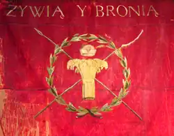 Flag of Polish peasant grenadier soldiers in Kraków with the words "They Feed and Defend"