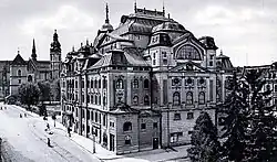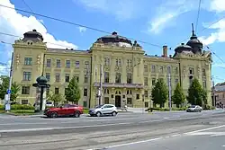 In 1828, there were three manufacturers and 460 workshops.[37] The first factories were established in the 1840s (sugar and nail factories). The first telegram message arrived in 1856, and the railway connected the city to Miskolc in 1860. In 1873, there were already connections to Prešov, Žilina, and Chop (in today's Ukraine). The city gained a public transit system in 1891 when the track was laid down for a horse-drawn tramway. The traction was electrified in 1914.[37] In 1906, Francis II Rákóczi's house of Rodostó was reproduced in Košice, and his remains were buried in the St. Elisabeth Cathedral.[38]
