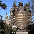 As a Hungarian free royal town, Košice reinforced the king's troops at the crucial moment of the bloody Battle of Rozgony in 1312 against the strong aristocratic Palatine Amadé Aba (family).[21][22] In 1347, it became the second-placed city in the hierarchy of the Hungarian free royal towns, with the same rights as the capital Buda. In 1369, it was granted its own coat of arms by Louis I of Hungary.[18] The Diet convened by Louis I in Košice decided that women could inherit the Hungarian throne.