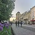 In 1723, the Immaculata statue was erected on the site of a former gallows on Main Street (Hlavná ulica) to commemorate the plague of 1710–1711.[34] The city also became one of the centers of the Hungarian linguistic revival, including the publication of the first Hungarian-language periodical, called the Magyar Museum, in Hungary in 1788.[35] The city's walls were demolished step by step from the early 19th century to 1856; only the Executioner's Bastion remained among limited parts of the wall. The city became the seat of its own bishopric in 1802. The city's surroundings became a theater of war again during the Revolutions of 1848, when the Imperial cavalry general Franz Schlik defeated the Hungarian army on 8 December 1848 and 4 January 1849. The city was captured by the Hungarian army on 15 February 1849, but the Russian troops drove them back on 24 June 1849.[36]