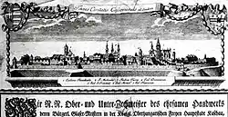 For some decades during the 17th century, Košice was a part of the Principality of Transylvania, and consequently a part of the Ottoman Empire, and was referred to as Kaşa in Turkish.[27] On 5 September 1619, the prince of Transylvania, Gabriel Bethlen captured Košice with the assistance of the future George I Rákóczi in another anti-Habsburg insurrection. By the Peace of Nikolsburg in 1621, the Habsburgs restored the religious toleration agreement of 1606 and recognized Transylvanian rule over the seven Partium counties: Ugocsa County, Bereg County, Zemplén County, Borsod County, Szabolcs County, Szatmár County, and Abaúj County (including Košice).[28] Bethlen married Catherine von Hohenzollern, of Johann Sigismund Kurfürst von Brandenburg, in Košice in 1626.[29]
