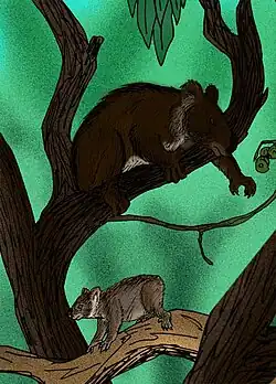 Reconstructions of the ancient koalas Nimiokoala (larger), and Litokoala (smaller), from the Miocene Riversleigh Fauna