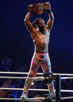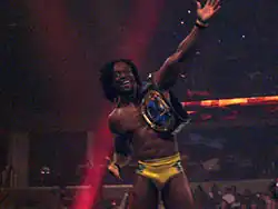 He is the first, and currently only, African-born world champion in WWE history. His WWE Championship win also made him WWE's 30th Triple Crown Champion and 20th overall Grand Slam Champion (13th under the current format).[7][8][9][10] With his NXT Tag Team Championship win in 2022, Kingston also became a Tag Team Triple Crown Champion, becoming the first wrestler to have won both the traditional and tag team version of the WWE Triple Crown, as well as having the most overall reigns with a WWE-branded tag team championship with 16.[11] With the exception of a few months spent as a villain in 2015 and his current run as a villain with The New Day, Kingston has been a heroic character for almost the entirety of his WWE career. He has also gotten some distinction through his numerous methods of avoiding elimination during the Royal Rumble.