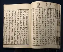 It was with the advent of printing in the early modern period that the Kojiki first reached a wide audience. The earliest printed edition of the text was the Kan'ei Kojiki (寛永古事記), published in Kyoto in 1644 (Kan'ei 21). A second edition, the Gōtō Kojiki (鼇頭古事記, "Kojiki with Marginal Notes") was printed by Deguchi (Watarai) Nobuyoshi, a priest at Ise Shrine, in 1687 (Jōkyō 4).[16][17]