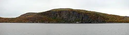 The peninsula is located in the far northwest of Russia, almost completely inside the Arctic Circle and is bordered by the Barents Sea in the north and the White Sea in the east and southeast.[2] Geologically, the peninsula occupies the northeastern edge of the Baltic Shield.[3] The western border of the peninsula stretches along the meridian from the Kola Bay through the valley of the Kola River, Lake Imandra, and the Niva River to the Kandalaksha Gulf,[3] although some sources push it all the way west to Russia's border with Finland.[4]