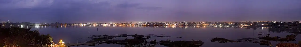 Kolhapur City at night from Rankala lake