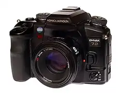 Until the sale of Konica Minolta's Photo Imaging unit to Sony in 2006, Konica Minolta produced the former Minolta range of 35 mm autofocus single-lens reflex cameras, variously named "Minolta Maxxum" in North America, "Minolta Dynax" in Europe, and "Minolta Alpha" in Japan and the rest of Asia. This range was introduced in 1985 with the Minolta Maxxum 7000, and culminated with the professional Maxxum 9 (1997) later made in a titanium body (9Ti) and technically advanced 7 (1999). The final Minolta 35 mm SLR AF cameras were the Maxxum 50 and 70 (Dynax 40 and 60), built in China.