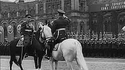 In 1924 and 1925 Rokossovsky attended the Leningrad Higher Cavalry School, where he first met Georgy Zhukov.[10] He was reassigned to Mongolia, where he was a trainer for the Mongolian People's Army. Soon after, while serving in the Special Red Banner Far Eastern Army under Vasily Blyukher, he took part in the Russo-Chinese Eastern Railroad War of 1929–1930. The Soviet Union intervened to return the Chinese Eastern Railway to joint Chinese and Soviet administration, after Chinese warlord Zhang Xueliang of the Republic of China attempted to seize complete control of the railway.[3]