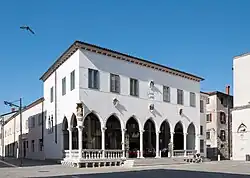 Koper's 15th-century Praetorian Palace is located on the city square. It was built from two older 13th-century houses that were connected by a loggia, rebuilt many times, and then finished as a Venetian Gothic palace. Today, it is home to the city of Koper's tourist office.[11]
