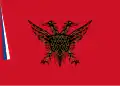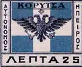 Flag of the Autonomous Albanian Republic of Korçë from 1916 to 1920 (left). Flag of the Autonomous Republic of Northern Epirus on a postage stamp issued in Korçë at 1914 (right).
