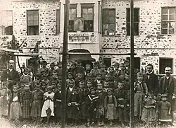 At beginning of the 18th century the inhabitants of Korçë attended the schools of nearby Moscopole.[25] The first school, a Greek language school, in the city was established in 1724 with the support of residents of nearby Vithkuq.[25][33] This school was destroyed during the Greek War of Independence but it reopened in 1830. In 1857 a Greek school for girls was operating in the city.[34] During the 19th century various local benefactors such as Ioannis Pangas and Anastas Avramidhi-Lakçe donated money for the promotion of Greek education and culture in Korçë, such as the Bangas Gymnasium.[35][36] Greek education was also financed by members of the diaspora in Egypt.[25] Similarly, kindergartens, boarding and urban schools, were also operating in the city during this period.[25] Under these developments, a special community fund, named the Lasso fund, was established in 1850 by the local Orthodox bishop Neophytos,[37] in order to support Greek cultural activity in Korçë.[38] At the eve of the Balkan Wars (1912) the total number of students attending Greek education in the city numbered 2,115.[39]