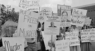 United States Congressman Larry McDonald from Georgia, who at the time was also the second president of the conservative John Birch Society, was on the flight. The Soviets contended former U.S. president Richard Nixon was to have been seated next to Larry McDonald on KAL 007 but that the CIA warned him not to go, according to the New York Post and Telegraph Agency of the Soviet Union (TASS); according to former Nixon aide Franklin R. Gannon, Nixon had received the offer but decided against it himself.[18]