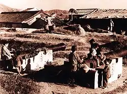 The history of the walled city can be traced back to the Song dynasty (960–1279), when a military outpost was set up to manage the salt trade in the area. Little took place for hundreds of years afterward, although 30 guards were stationed there in 1668.[5] A small coastal fort was established around 1810 after Chinese forces abandoned Tung Lung Fort.[6] In 1842, during the Qing dynasty, Hong Kong Island was ceded to Britain by the Treaty of Nanking. As a result, the Qing authorities felt it necessary to improve the fort to rule the area and check further British influence. The improvements, including the formidable defensive wall, were completed in 1847. The walled city was captured by rebels during the Taiping Rebellion in 1854, before being retaken a few weeks later.[5][7]