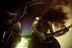 ![]() Kreator performing at the Reload Festival in Germany, 2018 | |