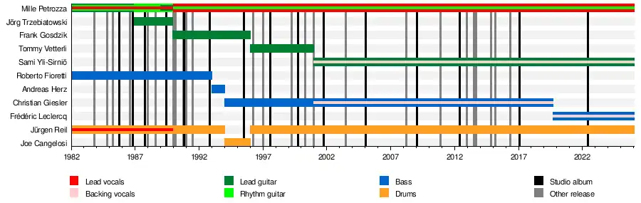 | Past members | Michael Wulf Jörg "Tritze" Trzebiatowski Frank "Blackfire" Gosdzik Tommy Vetterli Roberto "Rob" Fioretti Andreas Herz Joe Cangelosi Christian "Speesy" Giesler |
