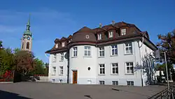 The name of the municipality stems from the Augustinian monastery Crucelin, later Kreuzlingen Abbey.[2] It was founded in 1125 by the Bishop of Constance Ulrich I. In the Swabian War and the 30 Years' War after the siege of Constance by Swedish troops, the Augustinian monastery was burned down by the people of Constance, who blamed the monks for having supported the enemy. In 1650, the monastery was rebuilt in its present location. With secularization in 1848, the buildings became a teachers' school. The chapel became a Catholic church.