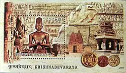 India Post released a commemorative miniature sheet to mark the completion of 500 years of Krishnadevaraya's coronation.