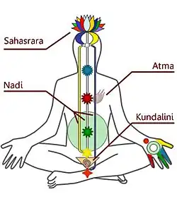 It is one of the components of an esoteric description of the "subtle body", which consists of nadis (energy channels), chakras (psychic centres), prana (subtle energy), and bindu (drops of essence).