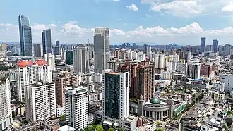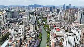 Kunming is a major economic center in Western China. The city's economic importance derives from its geographical position, as it shares a border with various Southeast Asian countries, serving them as a transportation hub in Southwest China, linking by rail to Vietnam and Laos, and by road to Myanmar and Thailand. This positioning also makes the city an important commercial center of trade in the region. The city also acts as a gateway to Southeast Asia and South Asia, the Kunming Changshui International Airport is one of the top 50-busiest airports in the world.[10][11] As of 2026, the city is also home to seven consulates from Southeast Asia and South Asia.[12]
