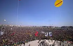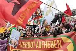 The PKK could count on support from protests and demonstrations often directed against policies of the Turkish government.[117] The PKK also fought a turf war against other radical Islamist Kurdish and Turkish organizations in Turkey. Turkish newspapers said that the PKK effectively used the prison force to gain appeal among the population which PKK has denied.[118][119]