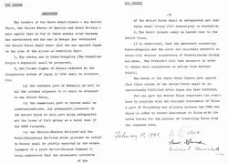 The leaders of the three great powers – the Soviet Union, the United States of America and Great Britain – have agreed that in two or three months after Germany has surrendered and the war in Europe is terminated, the Soviet Union shall enter into war against Japan on the side of the Allies on condition that: ... 2. The former rights of Russia violated by the treacherous attack of Japan in 1904 shall be restored, viz.: (a) The southern part of Sakhalin as well as the islands adjacent to it shall be returned to the Soviet Union; ... 3. The Kuril islands shall be handed over to the Soviet Union.