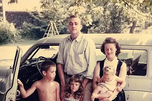 In 1958, his sister, Alice, died of cancer two days after her husband, James Carmalt Adams, was killed in a train accident. The Vonneguts took in three of the Adamses' young sons—James, Steven, and Kurt, aged 14, 11, and 9, respectively.[57] A fourth Adams son, Peter, age 2, also stayed with the Vonneguts for about a year before being given to the care of a paternal relative in Georgia.[58]