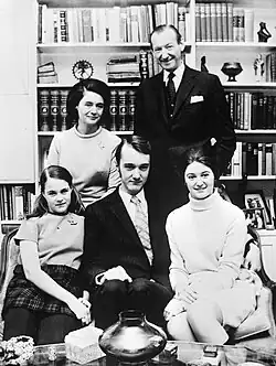 Waldheim was born in Sankt Andrä-Wördern, near Vienna, on 21 December 1918.[3] He was the eldest child of Walter Watzlawik, a schoolmaster of Czech origin,[4] and his wife Josefine Petrasch.[5] Watzlawik (original Czech spelling Václavík) changed his name to "Waldheim" that year as the Habsburg monarchy collapsed and eventually rose to become superintendent of schools for the Tulln District, attaining the rank of Regierungsrat (government councillor). Active in the Christian Social Party, he was well regarded as a devoutly Catholic family man.[6] Waldheim and his two younger siblings, a brother, Walther, and a sister, Gerlinde, enjoyed a comfortable middle-class upbringing. From his youth, Waldheim was distinguished by his unusual height of 1.92 m (6 ft 4 in). As a gymnasium student in Klosterneuburg, he excelled at languages and was a competent violinist in the school orchestra, also enjoying swimming, boating and tennis.[7]