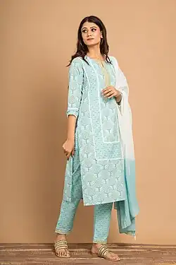 - ^ Alkazi, Roshen (2002), "Evolution of Indian Costume as a result of the links between Central Asia and India in ancient and medieval times", in Rahman, Abdur (ed.), India's Interaction with China, Central and West Asia, Oxford University Press, pp. 464–484, ISBN 978-0-19-565789-0 Quote: "This exposure to a different mode of dress for four centuries in the ancient period and for six centuries under Islamic rulers later, created the varieties of cut and sewn garments which now form and intrinsic part of what today is called Indian costume. This applies particularly to the Deccan and the Northern parts of India. The South, however, retained the earlier draped and unstitched garments of ancient India, e.g., the antariya/dhoti, the uttariya/dupatta and cummerband/waist cloth. These cut and sewn garments of the invaders underwent dramatic changes evolving from simple Central Asian nomadic costume (both Kushan and the Turk Mongol peoples were horse-riding nomads) to the highly civilized, urban and decorative costume of the Mughal court and the day-to-day comfortable and relaxed dress of the common man of today called the kurta-pyjama (page 468)"