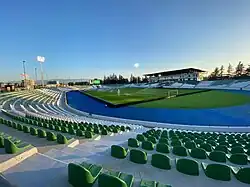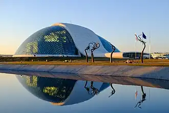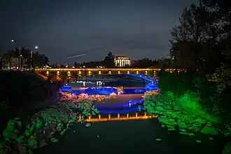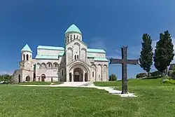 In 2011, Mikheil Saakashvili, the president of Georgia, signed a constitutional amendment relocating the parliament to Kutaisi.[9] On 26 May 2012, Saakashvili inaugurated the new Parliament building in Kutaisi. This was done in an effort to decentralize power and shift some political control closer to Abkhazia, although it has been criticized as marginalizing the legislature, and also for the demolition of a Soviet War Memorial formerly at the new building's location.[10] The subsequent government of the Georgian Dream passed a new constitution that moved the parliament back to Tbilisi, effective from January 2019.[11]