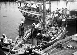 Kuwait was the centre of boat building in the Persian Gulf region.[11][12] During the late eighteenth and nineteenth centuries, ship vessels made in Kuwait carried the bulk of trade between the ports of India, East Africa and the Red Sea.[13][14][15] Kuwaiti ship vessels were renowned throughout the Indian Ocean.[16] Regional geopolitical turbulence helped foster economic prosperity in Kuwait in the second half of the 18th century.[17] Kuwait became prosperous due to Basra's instability in the late 18th century.[18] At the time, Kuwait functioned partly as a haven for Basra's merchants fleeing Ottoman persecution.[19] According to Palgrave, Kuwaitis developed a reputation as the best sailors in the Persian Gulf.[16][20][21]