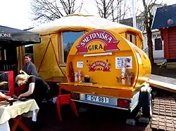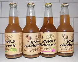 Kvass can be found in some supermarkets and grocery stores, where it is known in Polish as kwas chlebowy ([kvas xlɛbɔvɨ]). Commercial bottled versions of the drink are the most common variant, as some companies specialise in manufacturing a more modern version of the drink (some variants are manufactured in Poland whilst others are imported from its neighbouring countries, Lithuania and Ukraine being the most popular source).[37][44] However, old recipes for a traditional version of kvass exist. Some of them originate from eastern Poland;[45] others from more central regions include adding honey for flavour.[46] Although commercial kvass is much easier to find in Polish shops, Polish manufacturers of more natural and healthier variants of kvass have become increasingly popular both within and outside of the country's borders.[47][22] A less healthy alternative of quick-to-make variants using kvass concentrate can also be purchased in shops.[48] One colloquial Polish name for kwas chlebowy is wiejska oranżada ('rural orangeade').[20] In some Polish villages, such as Zaława and its surroundings, kvass was traditionally produced on every farm.[49]