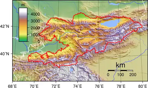 The Kyrgyz state reached its greatest expansion after defeating the Uyghur Khaganate in 840 AD.[30] From the tenth century, the Kyrgyz migrated as far as the Tian Shan range and maintained their dominance over this territory for about 200 years.