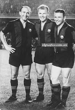 László Kubala[1] (10 June 1927 – 17 May 2002) was a professional footballer. He played as a forward for Ferencváros, Slovan Bratislava, Barcelona, and Espanyol, among other clubs. Regarded as one of the greatest players in history, Kubala is considered a hero of Barcelona.[2] He was born in Hungary but also had Czechoslovak and Spanish citizenship, and played for the national teams of all three countries.[3][4][5]
