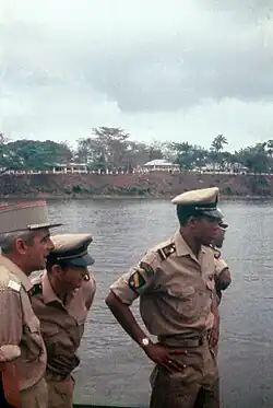 During these events, no gunshots were fired. The people did not react strongly, which according to the military, was a sign of approval.[79] A provisional government was formed, and the presidency was offered to Aubame. The government was composed of civilian politicians from both the UDSG and BDG, such as Paul Gondjout.[80] The plotters were content to ensure security for civilians. The small Gabonese army did not intervene in the coup; composed mostly of French officers, they remained in their barracks.[47]