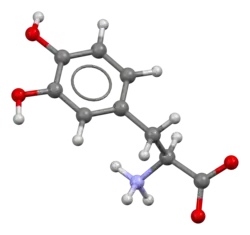 1. ^ Howard ST, Hursthouse MB, Lehmann CW, Poyner EA (1995). "Experimental and theoretical determination of electronic properties in Ldopa". Acta Crystallogr. B. 51 (3): 328–337. Bibcode:1995AcCrB..51..328H. doi:10.1107/S0108768194011407. S2CID 96802274.