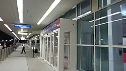 Construction of the project's first phase started in spring of 2016, once final plans were approved by the Port Authority board, with the entire redevelopment scheduled to be completed by late 2022.[69] Terminal B would be demolished, and Delta would rebuild its terminals C and D in coordination with the plan. The new airport was to feature an island gate system, with passengers connecting between the terminal building and the gates via bridges that would be high enough for aircraft to taxi under.[65][70] In late March 2016, the comprehensive plans for the redevelopment were approved unanimously between the Port Authority of New York, New Jersey, and LaGuardia Gateway Partners for the Terminal B Project.[71][72] Construction costs were estimated to range from $4 billion to $5.3 billion.[73] In August 2017, Magic Johnson Enterprises and Loop Capital created a joint venture named JLC Capital to invest in Phase 2 of LaGuardia Airport's reconstruction.[74] The same month, Delta broke ground on the last phase of the airport's reconstruction.[75][76] On December 9, 2017, six airlines moved at LGA in anticipation of the new terminals. Alaska Airlines (originally Virgin America) and JetBlue moved to the Marine Air Terminal. American consolidated in Terminal B. Frontier and Spirit depart from Terminal C and arrive at Terminal D.[77] Since the move, there have been further changes with Alaska Airlines ending service to LaGuardia, JetBlue moving to Terminal B, and Spirit consolidating its operations in Terminal A.[78]