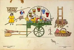 A great crowd, including children, has gathered with street sellers announcing their wares (chorus: Aranci, datteri! Caldi i marroni!—"Oranges, dates! Hot chestnuts!"). The friends arrive; Rodolfo buys Mimì a bonnet from a vendor, while Colline buys a coat and Schaunard a horn. Parisians gossip with friends and bargain with the vendors; the children of the streets clamor to see the wares of Parpignol, the toy seller. The friends enter the Cafe Momus.