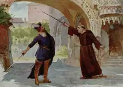 Having recovered, Alvaro is confronted by Carlo. They begin to duel, but are pulled away from each other by the soldiers. As they restrain Carlo, the anguished Don Alvaro vows to enter a monastery.