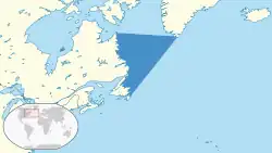 The Labrador Sea (French: mer du Labrador; Danish: Labradorhavet) is an arm of the North Atlantic Ocean between the Labrador Peninsula and Greenland. The sea is flanked by continental shelves to the southwest, northwest, and northeast. It connects to the north with Baffin Bay through the Davis Strait.[3] It is a marginal sea of the Atlantic.[4][5]