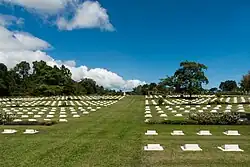 The liberation of Borneo by the Allied forces began on 10 June 1945 when the Australian Army under the command of Australian Major General George Wootten launched an attack under the codename of Operation Oboe Six. Labuan became the main objective for the Allied forces to repossess.[36] Soon, the 9th Division of the Australian Army launched the attack with support from airstrikes and sea bombardments until the capture of the Labuan airstrip.[37][38] Most of the Labuan island area including the main town of Victoria was under the control of Allied forces within four days of the landing on 10 June.[36] On 9 September 1945, the Japanese Lieutenant General Masao Baba officially surrendered at a place now known as Surrender Point near the Layang-layang beach which he had been brought to the 9th Division headquarters on the island to sign the surrender document in front of the Australian 9th Division Army Commander George Wootten.[39]