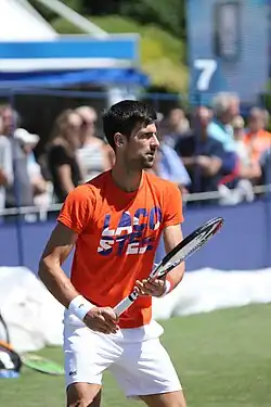 Tennis superstar Novak Djokovic, who has captured the most grand slams of any player under Lacoste[36]